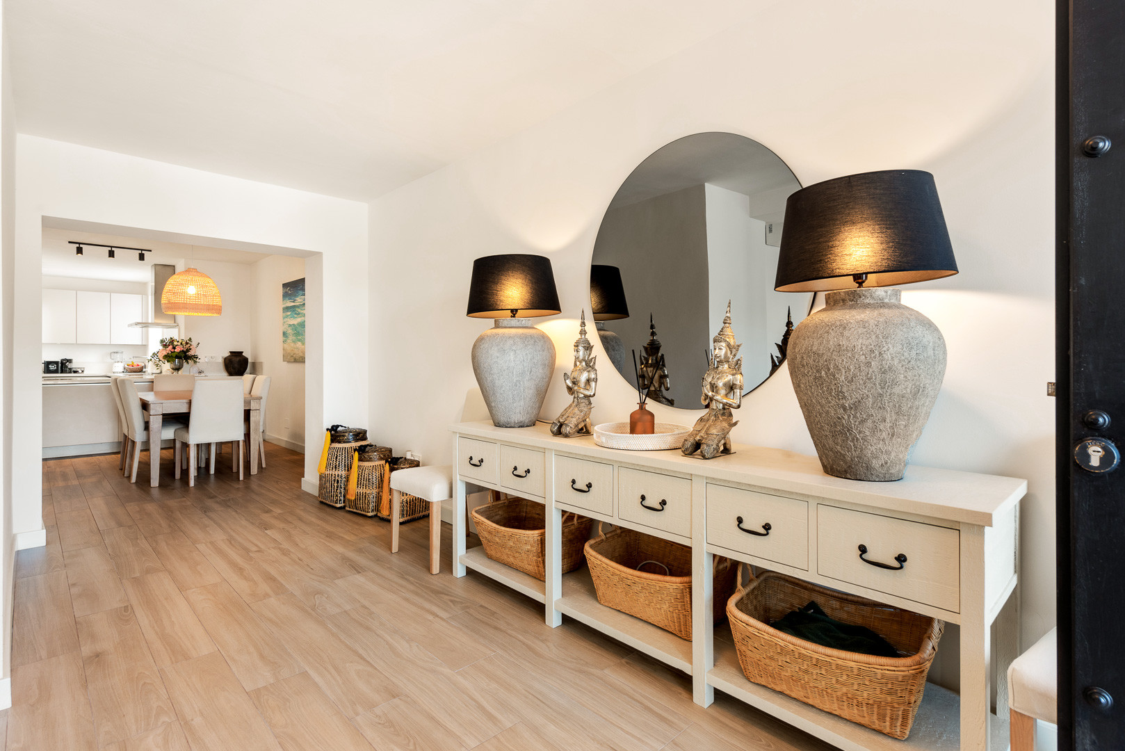 Una oportunidad única de adquirir una villa privada de lujo de 3 dormitorios al precio de un apartamento. Ubicada en una tranquila calle sin salida, esta hermosa villa de una sola planta ha sido reformada con los más altos estándares y goza de excelentes vistas al mar. Unos escalones conducen desde la entrada de la calle a una zona elevada de piscina y jardín que ofrece buenas vistas al mar hacia la costa de África; unos pasos más y se llega a la principal terraza cubierta de la villa, que también cuenta con magníficas vistas al mar y donde se encuentra la entrada principal de la vivienda. Un pequeño recibidor da paso a un amplio salón con chimenea y vistas al jardín y la piscina hacia el mar. Detrás del salón se encuentra una cocina totalmente equipada que conduce a una gran sala de estar adicional con televisión, la cual da a la encantadora terraza trasera con barbacoa y chimenea exterior. Si se necesitara un cuarto dormitorio, esta estancia podría adaptarse fácilmente como tal.