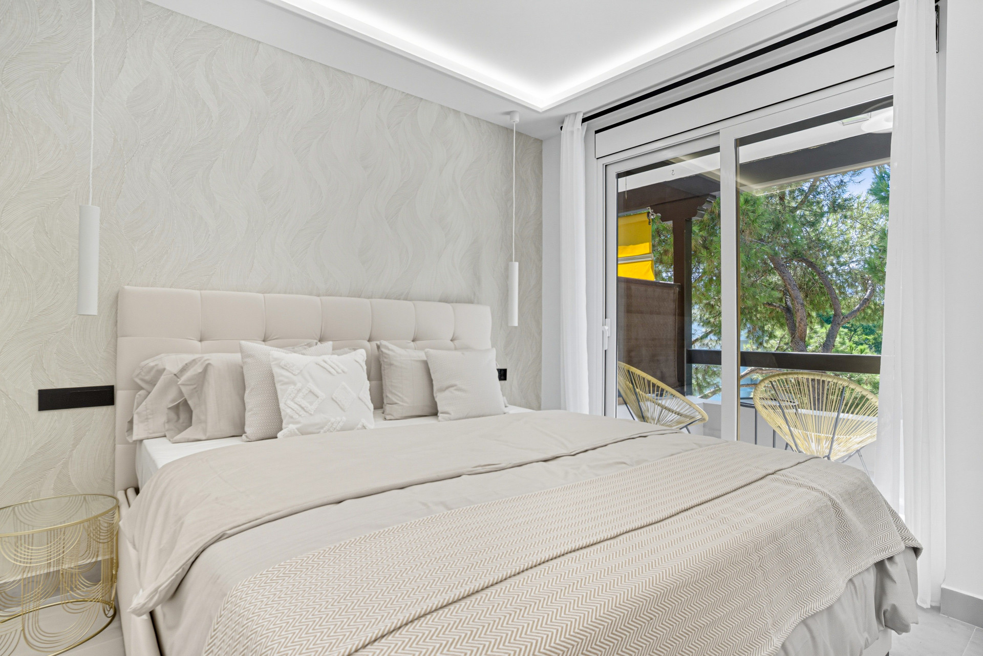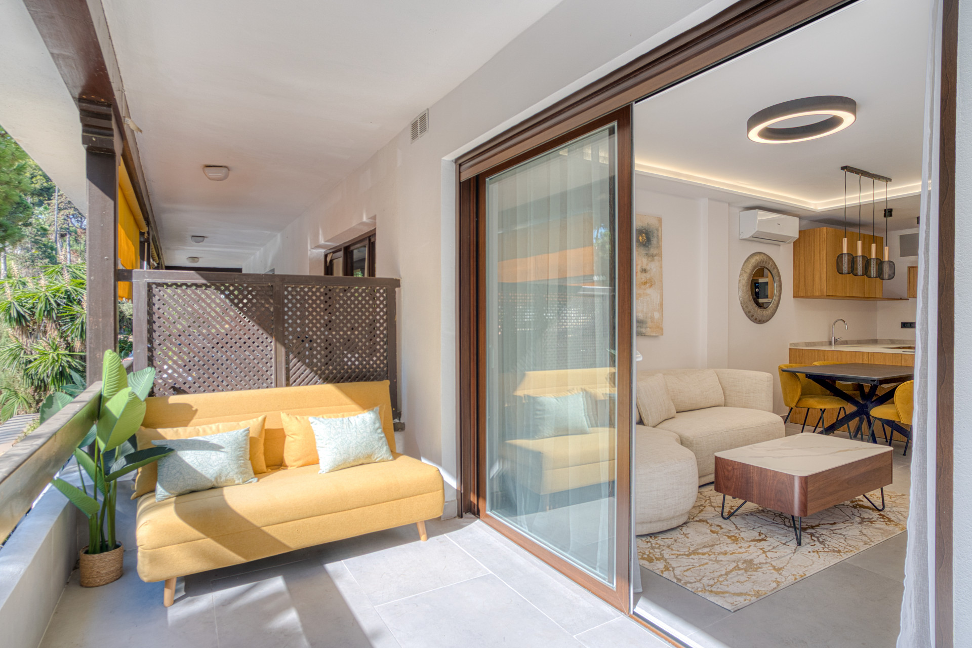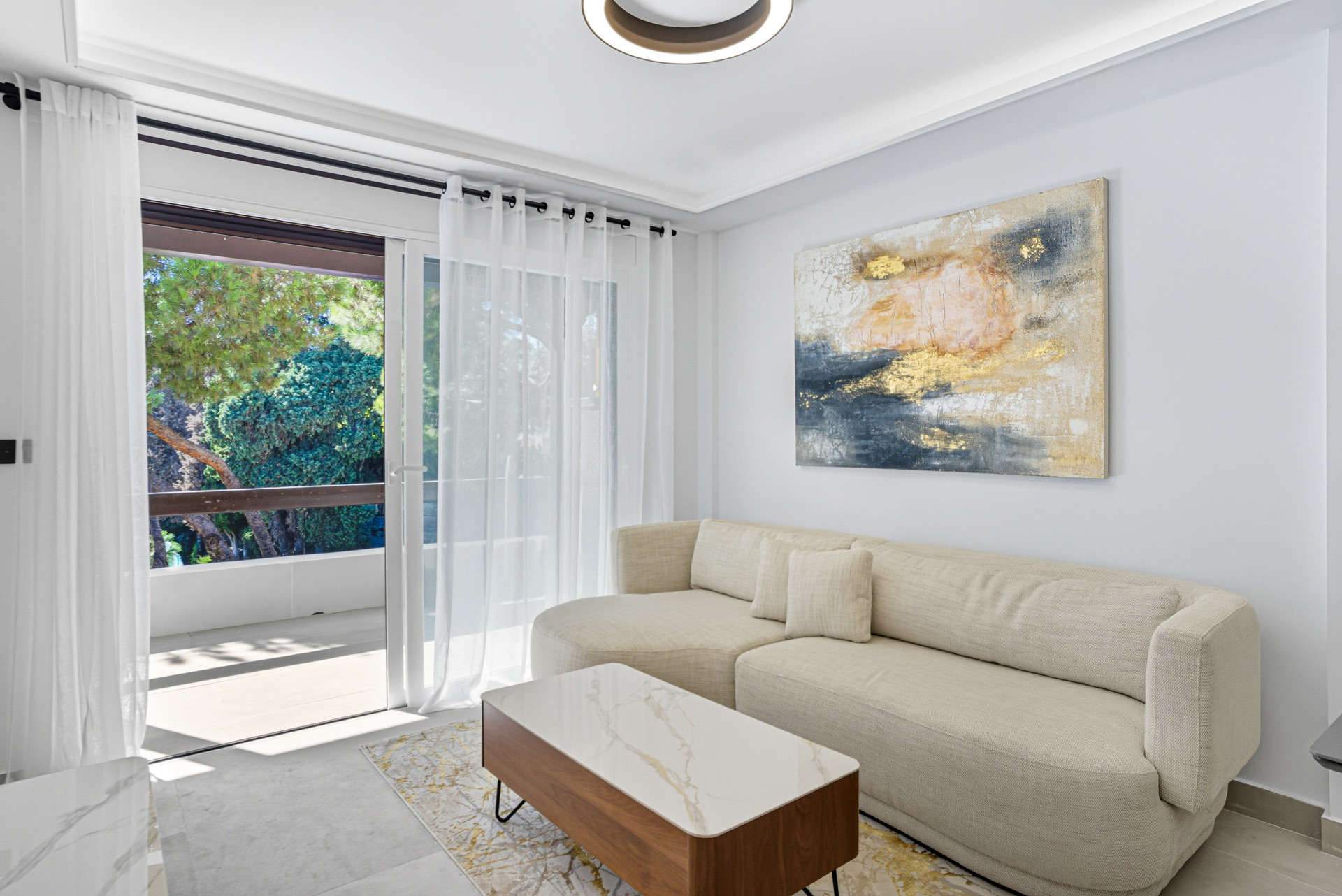 Este excepcional apartamento de tres dormitorios está situado en una ubicación muy solicitada en la prestigiosa Milla de Oro de Marbella, dentro de la encantadora urbanización de La Carolina Park. La comunidad ofrece amplios jardines ajardinados, dos piscinas y una pista de tenis, mientras que también está a poca distancia de la playa, restaurantes de renombre y todas las comodidades esenciales. Recientemente renovado a un alto nivel, el apartamento está orientado al oeste y cuenta con una amplia cocina de planta abierta y sala de estar con modernos accesorios y aire acondicionado, que conecta perfectamente con una terraza privada perfecta para comer al aire libre o disfrutar del sol de la tarde. El dormitorio principal cuenta con un baño en suite, complementado con dos dormitorios bien tamaño y un segundo baño. Además, la propiedad incluye una plaza de aparcamiento para un coche en el garaje comunitario, lo que lo hace perfectamente adecuado para una cómoda vida durante todo el año en una de las zonas más deseadas de Marbella.