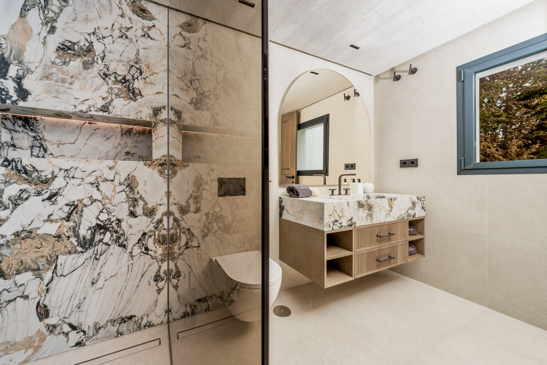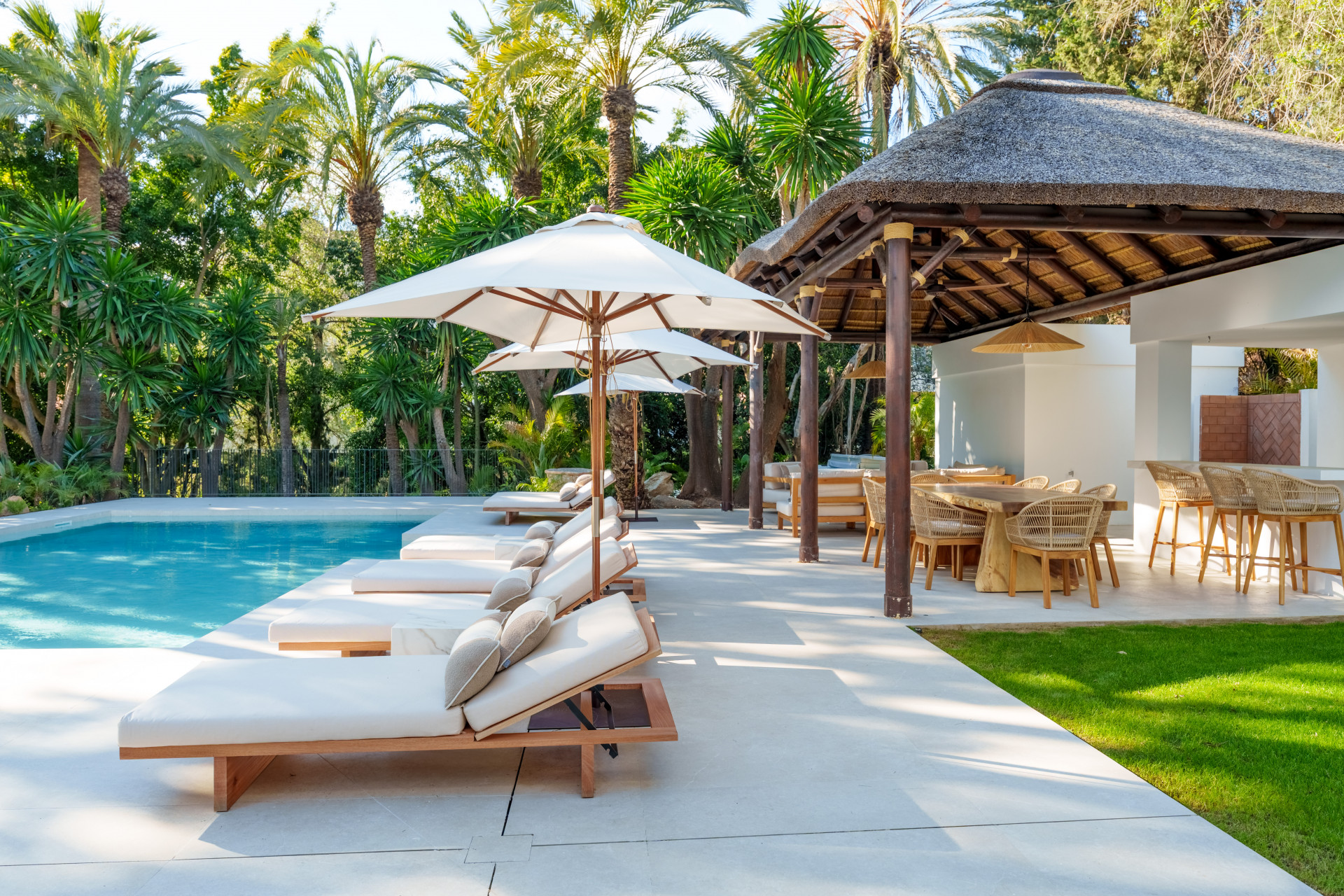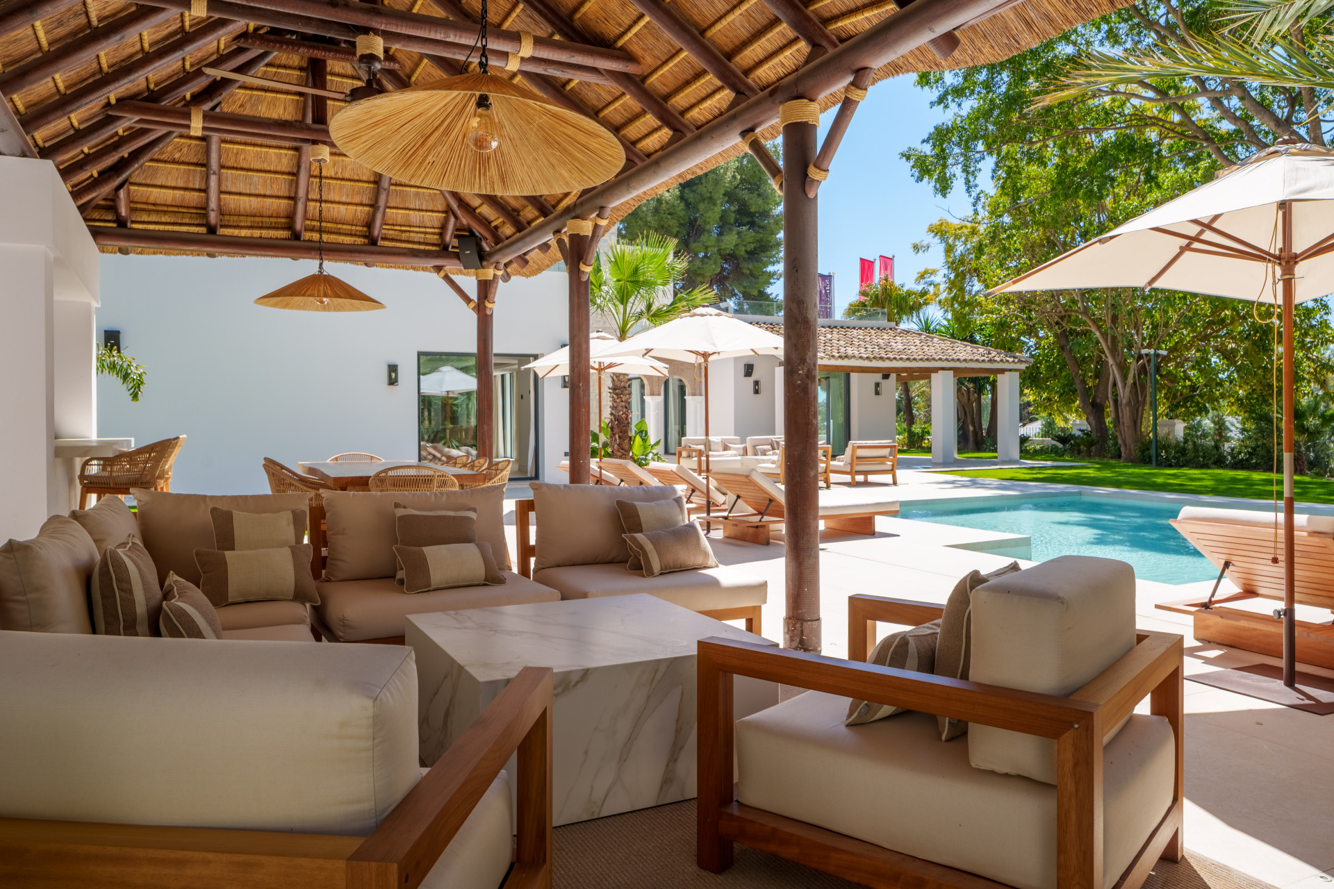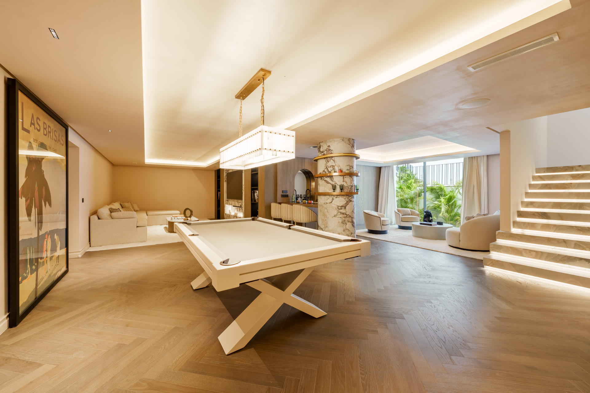 La villa marie harmonieusement l’architecture contemporaine au charme intemporel andalou. Un patio intérieur pittoresque accentue la lumière naturelle et le caractère, tandis que la douche extérieure de la suite parentale offre une vue panoramique sur le parcours de golf environnant — une caractéristique unique qui sublime le quotidien. De plus, la maison propose trois salons TV distincts, offrant de vastes espaces pour la détente et la vie de famille.