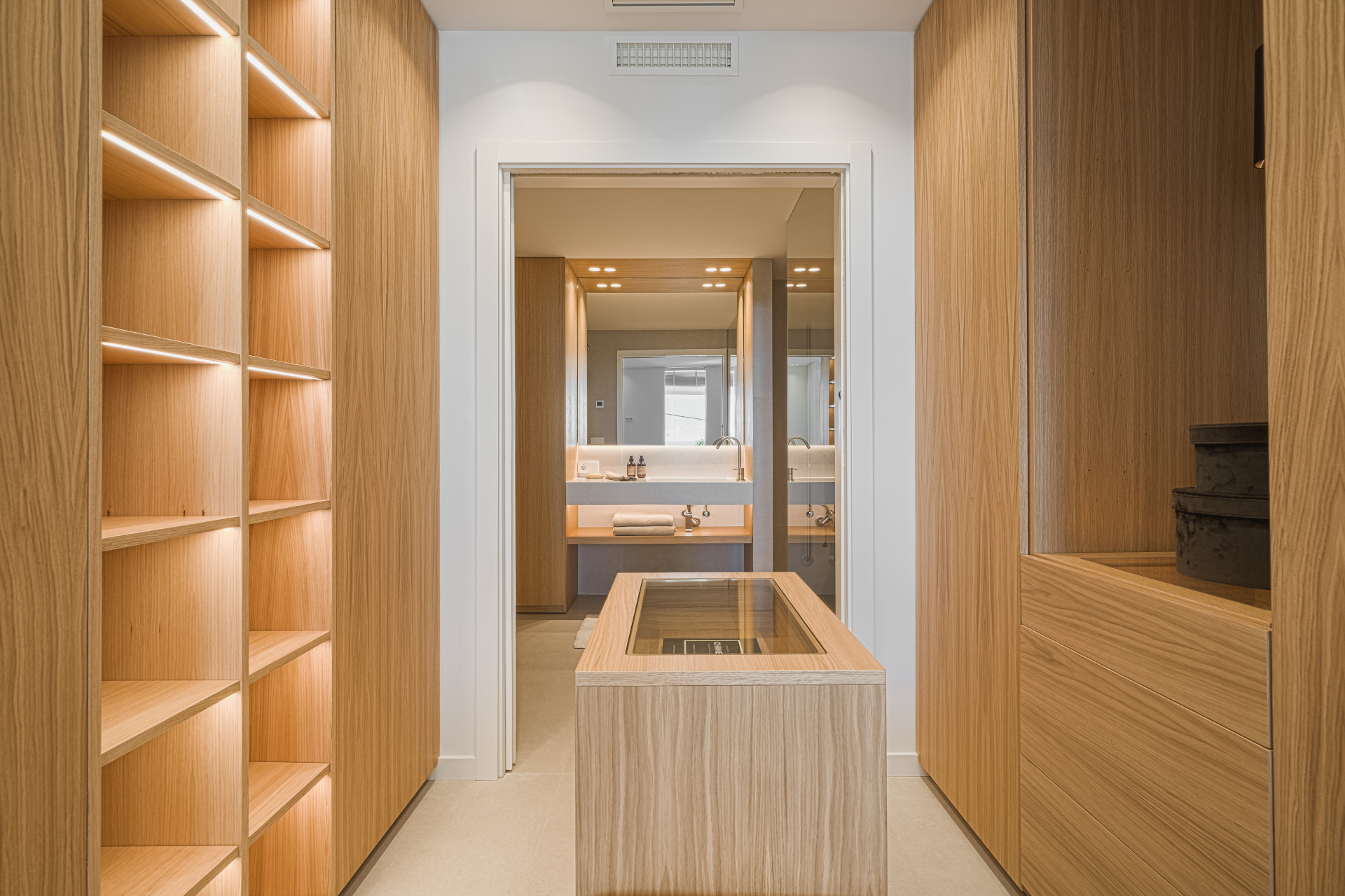 Les autres caractéristiques comprennent le chauffage par le sol, une buanderie séparée et un garage privé avec rangement. L’immeuble bénéficie également d’un accès ascenseur directement du garage à l’appartement pour un maximum de commodité.