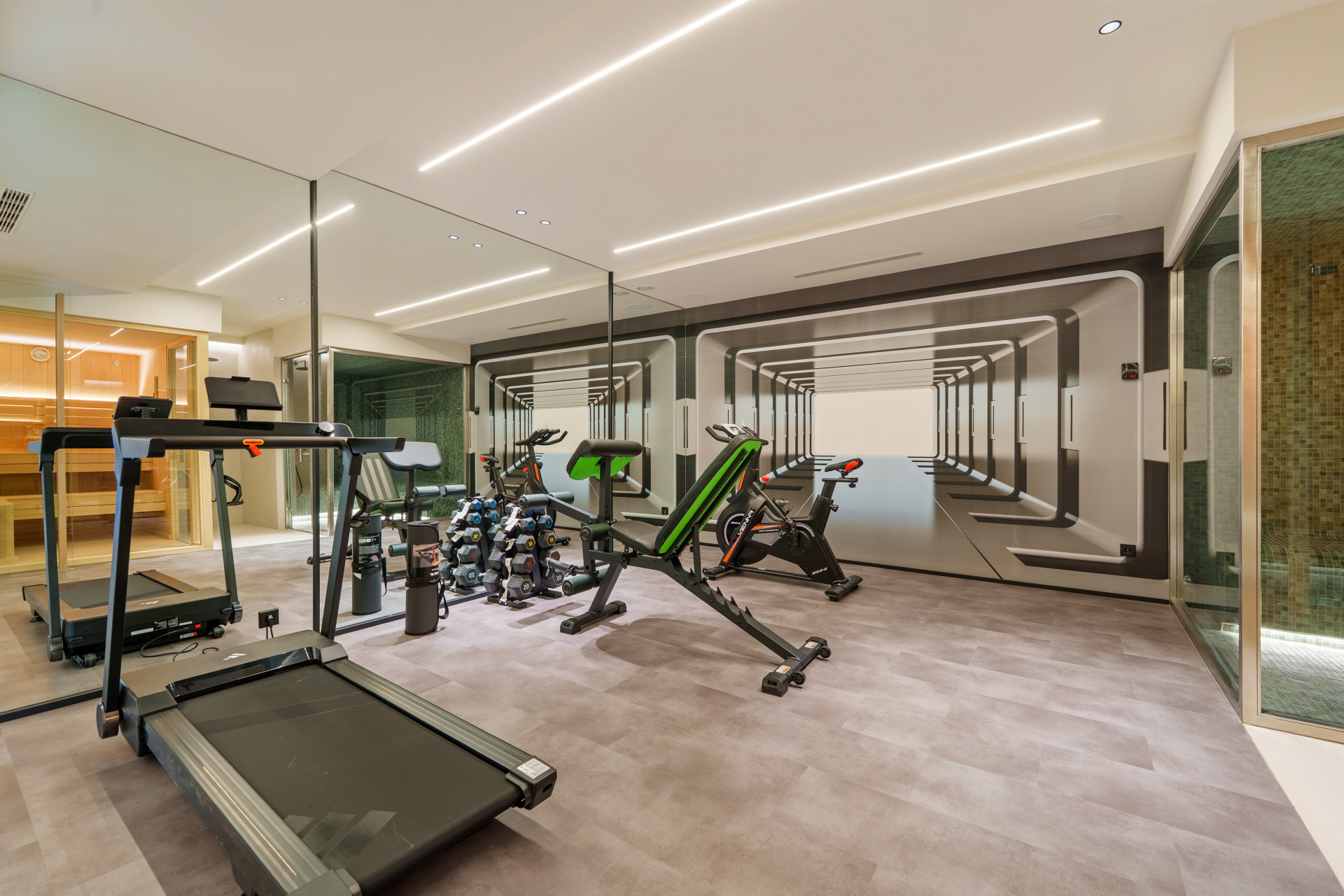 Pour le bien-être et les loisirs, le niveau inférieur comprend une salle de sport entièrement équipée, avec sauna et hammam vitrés, ainsi qu’un vaste espace dédié à l’exercice et à la détente. Un garage sécurisé et une entrée raffinée ajoutent confort et intimité à cette résidence d’exception. Conçue pour une vie côtière contemporaine, cette villa à Linda Vista Baja offre un style raffiné et tout le confort moderne dans un emplacement de choix.