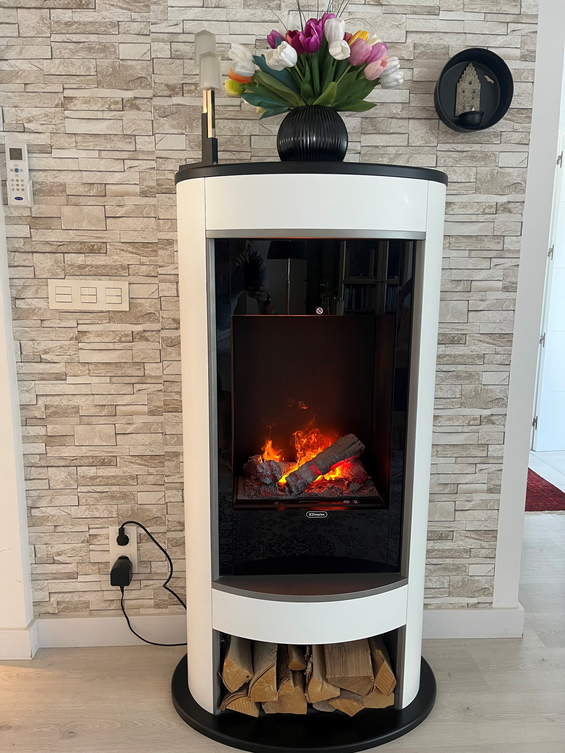 • Spacieux et lumineux séjour avec une élégante cheminée électrique et une vue dégagée sur les espaces verts environnants et les montagnes.