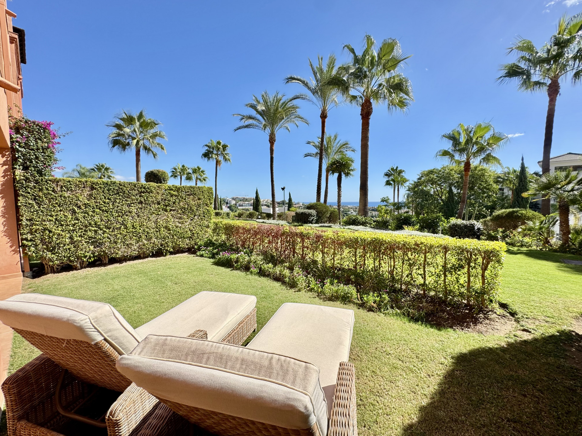 Gelegen in de exclusieve Royal Flamingos gemeenschap, geniet dit prachtige gelijkvloerse appartement met twee slaapkamers van een adembenemend open uitzicht op de Middellandse Zee en de omliggende golfbanen. Het appartement bevindt zich naast het gerenommeerde vijfsterrenhotel Villa Padierna Palace en biedt een unieke combinatie van luxe, rust en een toplocatie.