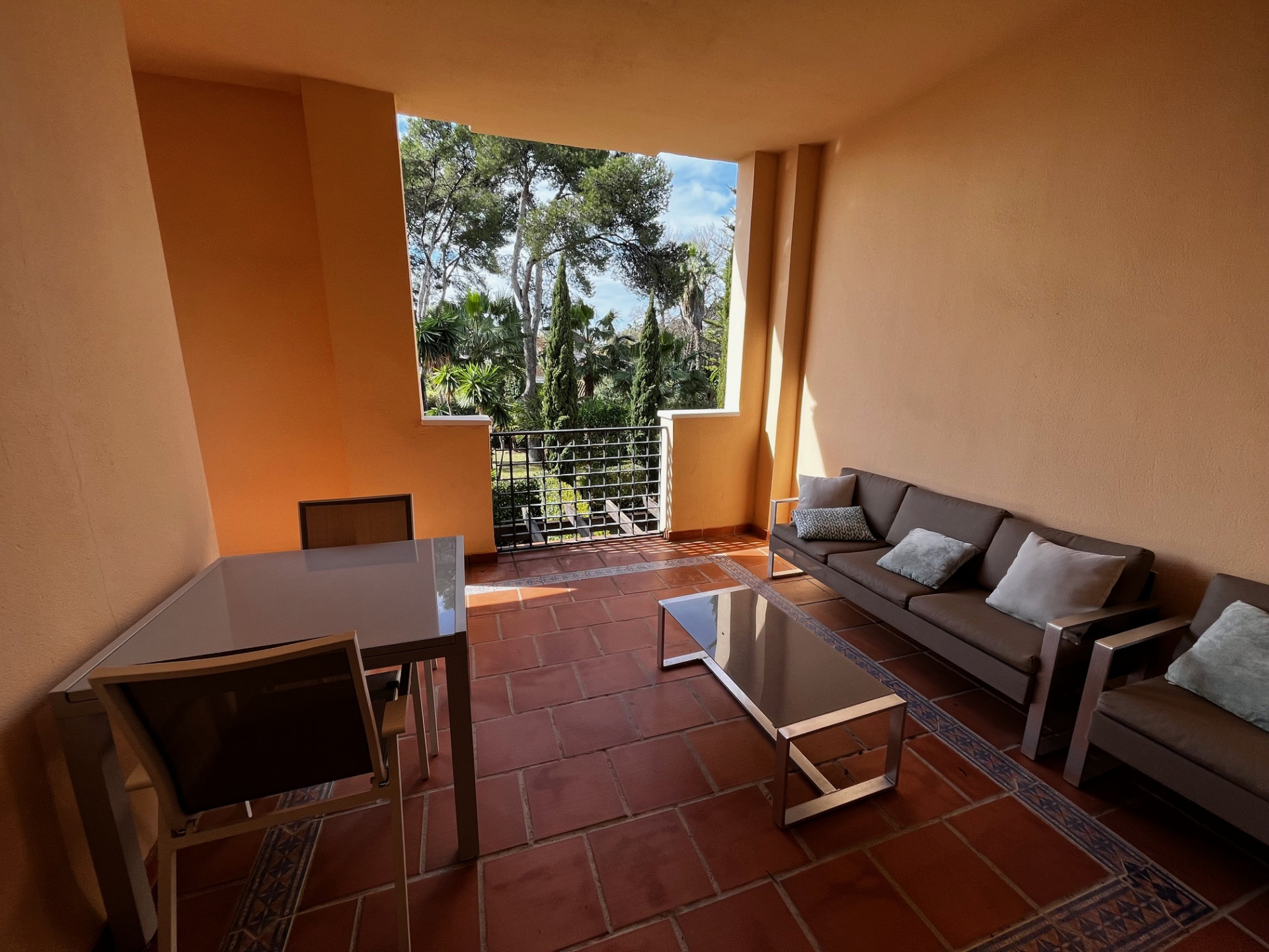 Denne leiligheten ligger i et eksklusivt inngjerdet område med bare seksti boliger, og tilbyr døgnåpen sikkerhet og en enorm frodig middelhavshage og semi-tropisk hage. Komplekset kan skilte med eksepsjonelle fasiliteter, inkludert et utendørsbasseng og et spa med boblebad, badstue og oppvarmet innendørsbasseng. Eiendommen har en perfekt beliggenhet mindre enn 150 meter fra stranden og i gangavstand fra den verdenskjente Puerto Banús, og tilbyr både luksus og bekvemmelighet. Planløsningen har en elegant entré som fører til en romslig stue og spisestue med tilgang til en vestvendt overbygd terrasse. Det fullt utstyrte kjøkkenet inkluderer et separat vaskerom. Hovedsoverommet har eget bad og tilgang til terrassen, supplert av et andre, velutstyrt soverom og et gjestebad. Eiendommen er komplett med en egen garasjeplass.