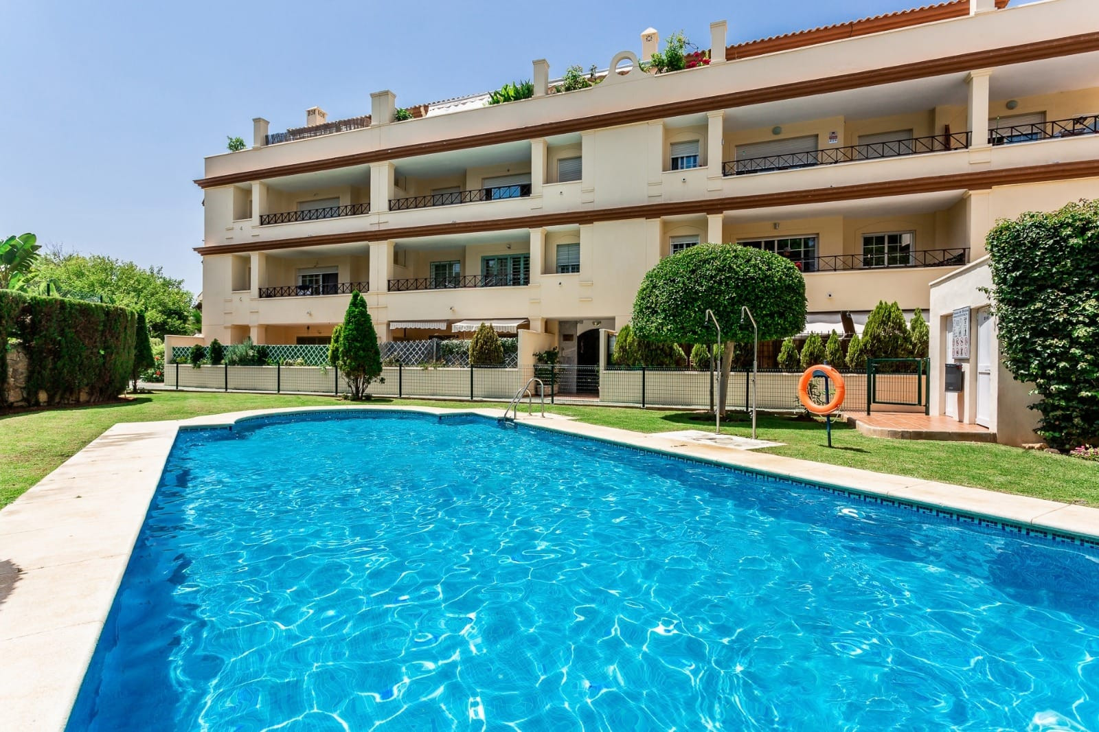 bekvemmelighet og sikkerhet. Denne leiligheten har en perfekt beliggenhet nær strandklubber, restauranter, supermarkeder og golfbaner, og er et utmerket alternativ som feriehus, permanent bolig eller investeringseiendom på et av Marbella Østs mest attraktive steder.