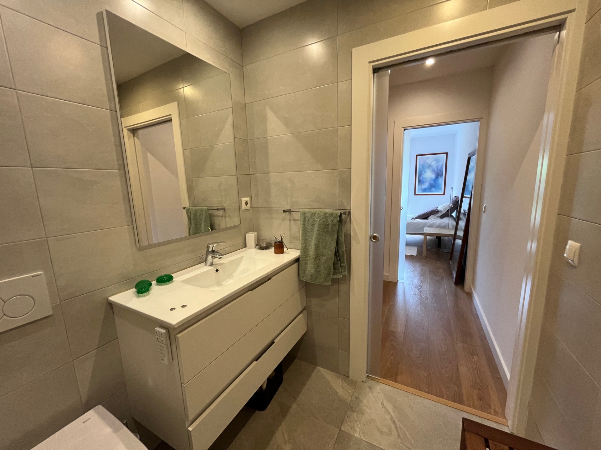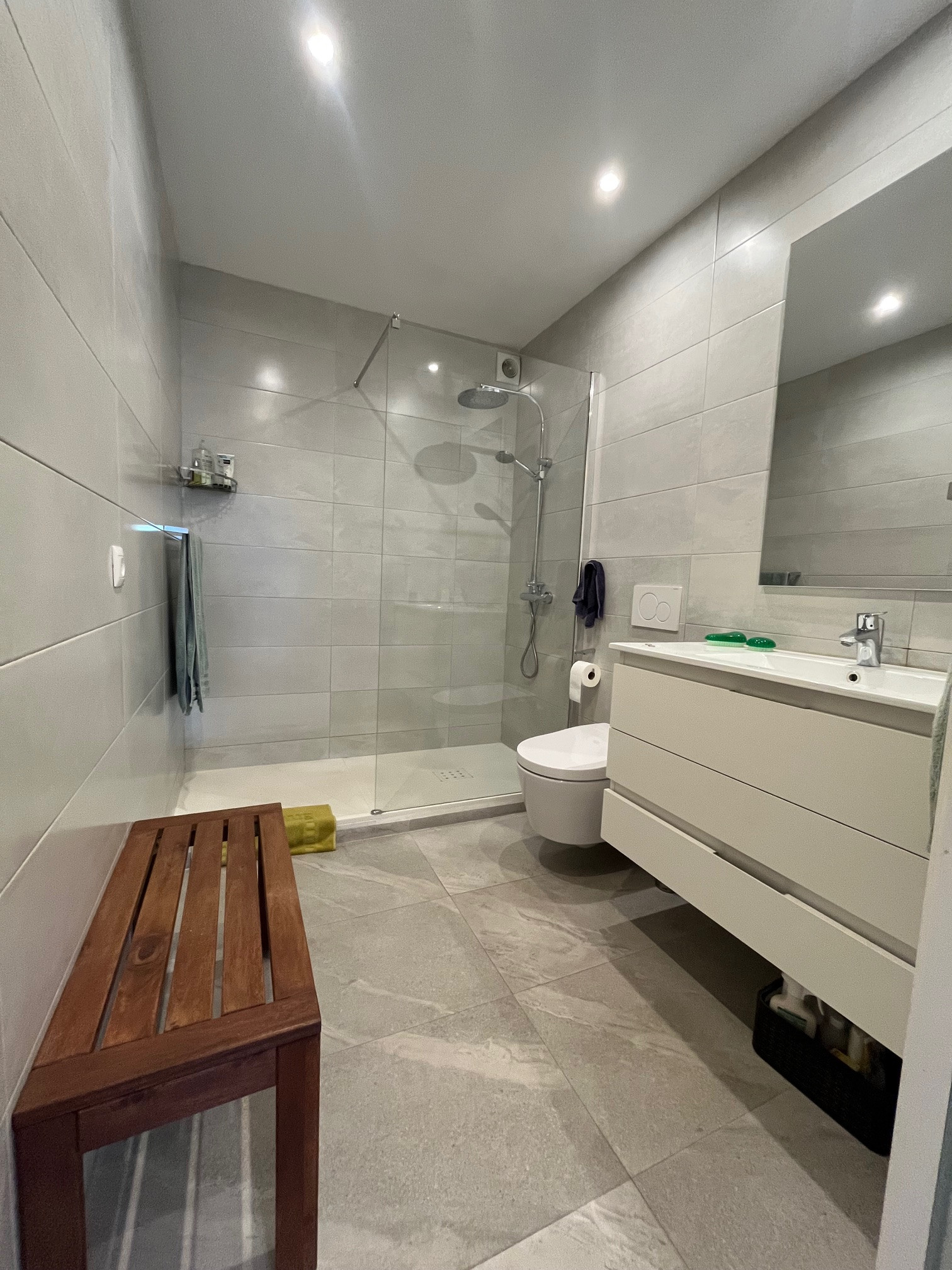 Eiendommen tilbyr ett soverom med eget bad og walk-in closet, et andre soverom med separat bad, en romslig stue med åpen kjøkkenløsning. Liten hage med sittegruppe.