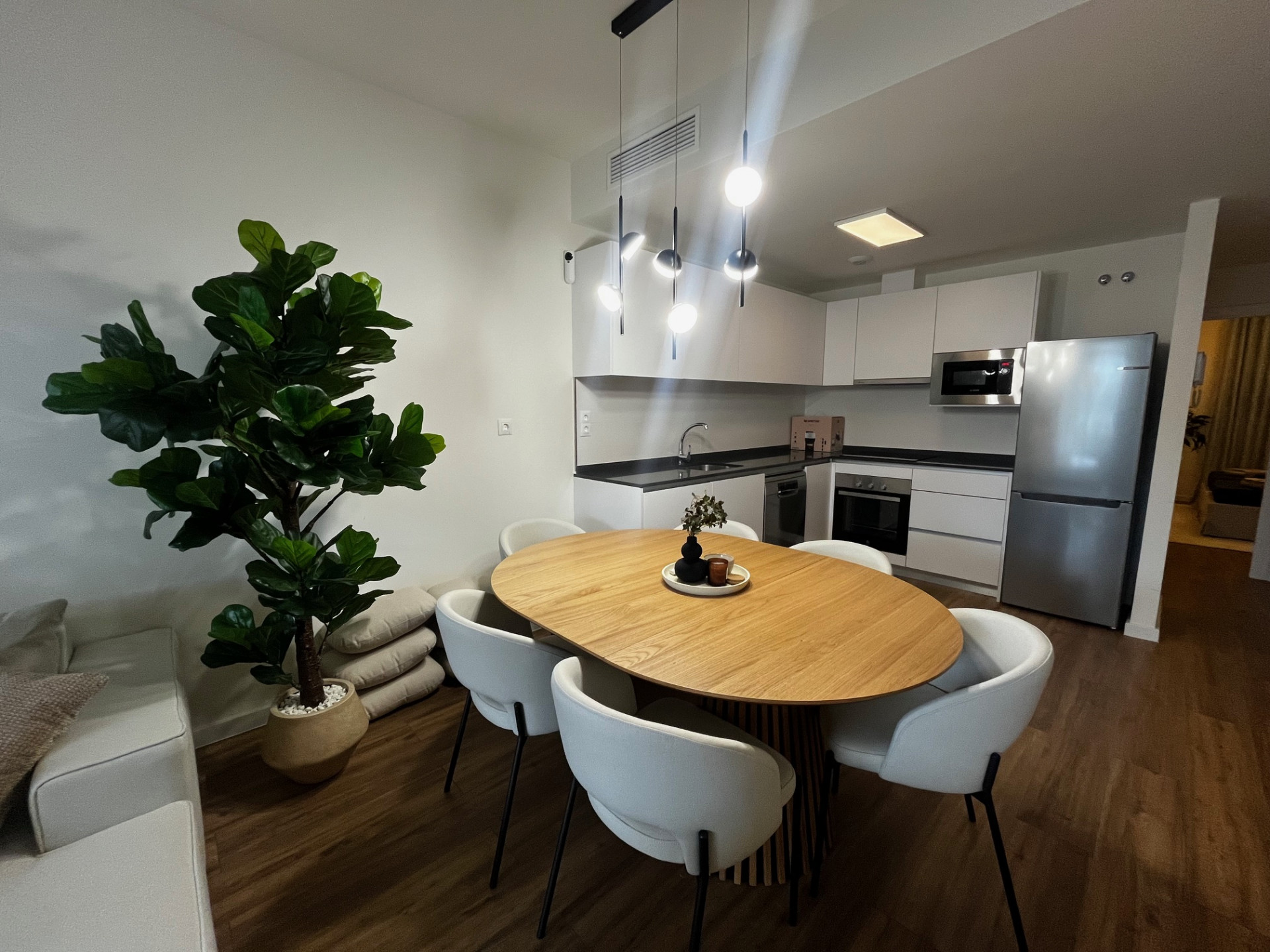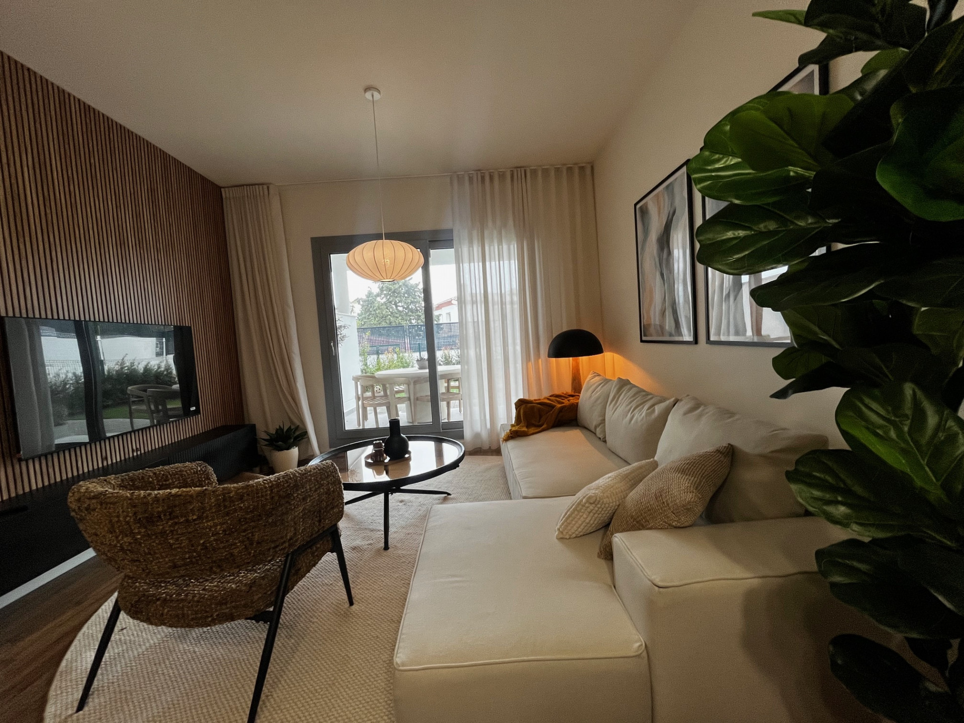 Opplev moderne luksus i denne splitter nye (2024) designermøblerte leiligheten i første etasje. Denne boligen kombinerer perfekt roen i et naturlig fristed ved golfbanen med bekvemmeligheten av å være bare 5 minutter fra det pulserende hjertet av Estepona, og tilbyr en enestående livsstil.