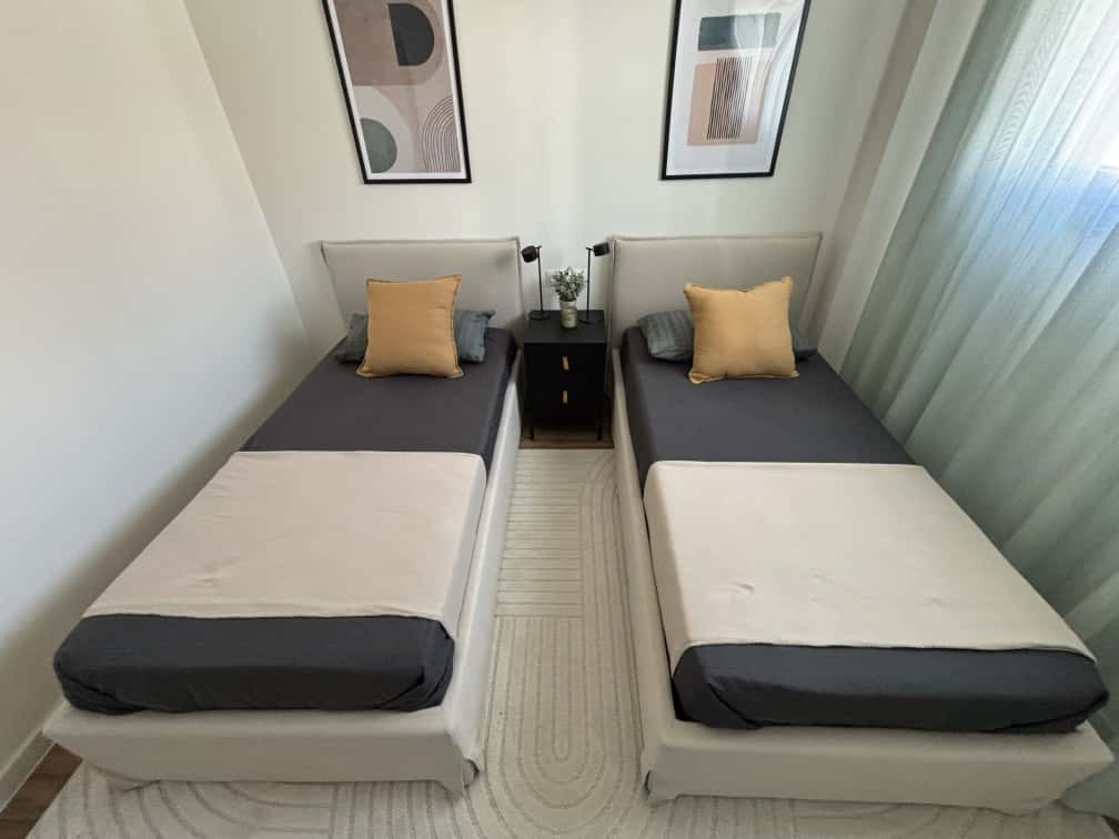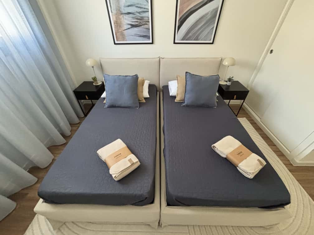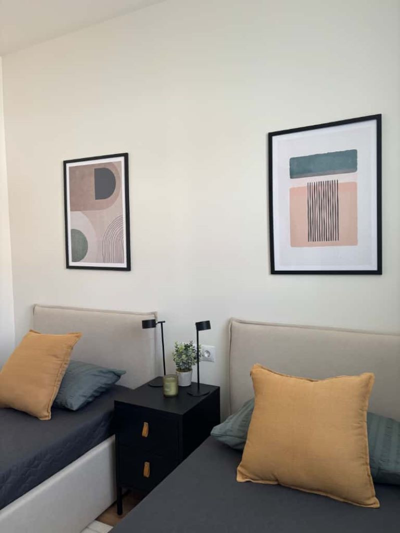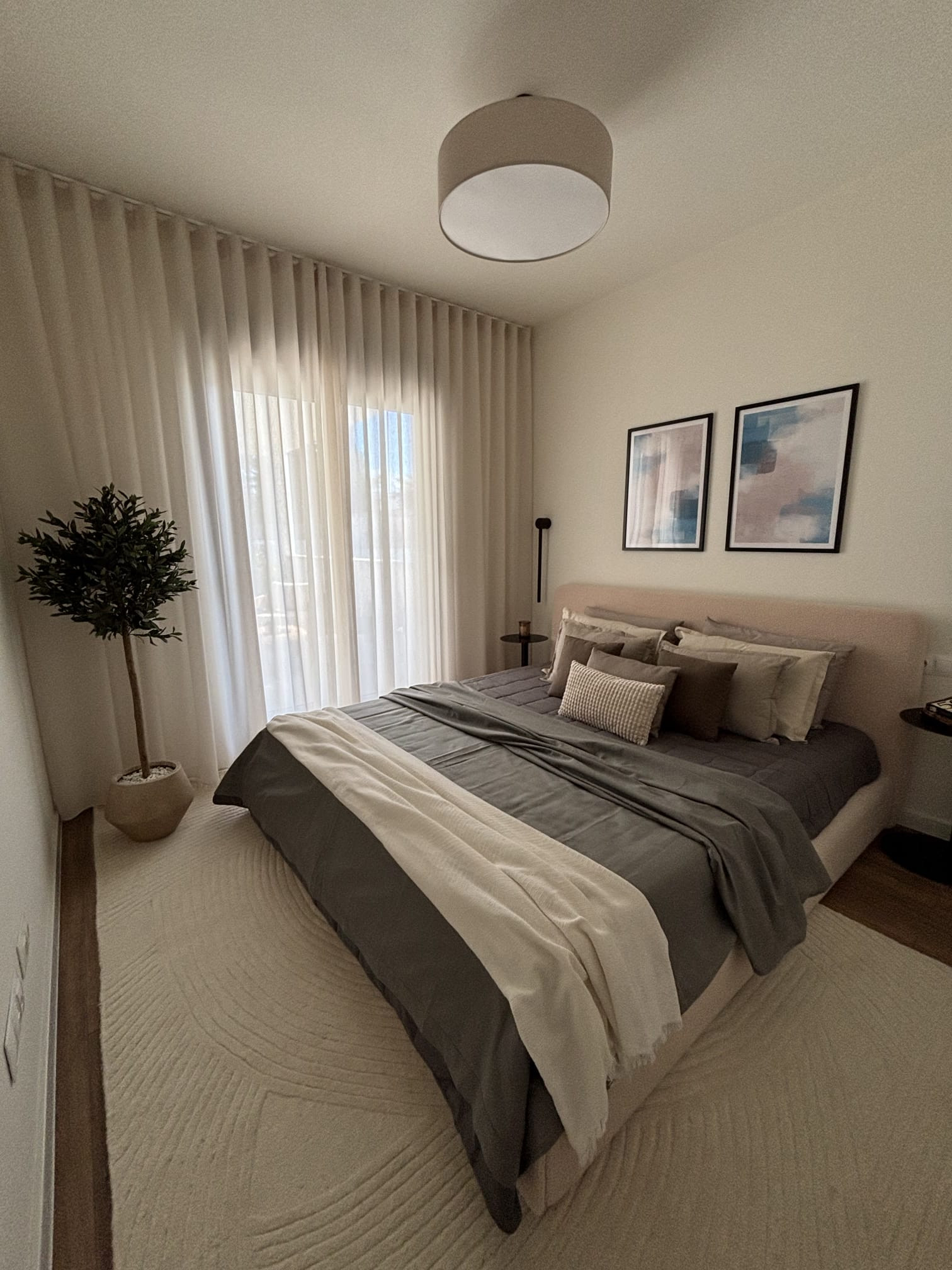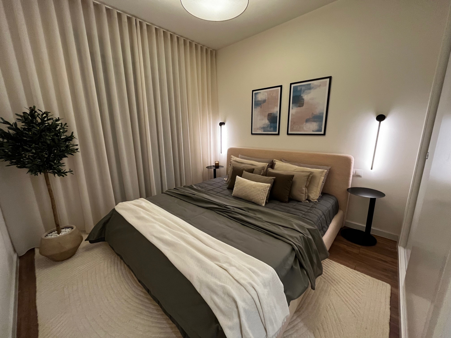 3 stylowo urządzone sypialnie: główna sypialnia z łóżkiem o szerokości 180 cm, pozostałe dwie z łóżkiem pojedynczym z miejscem do przechowywania i wykończeniem premium.