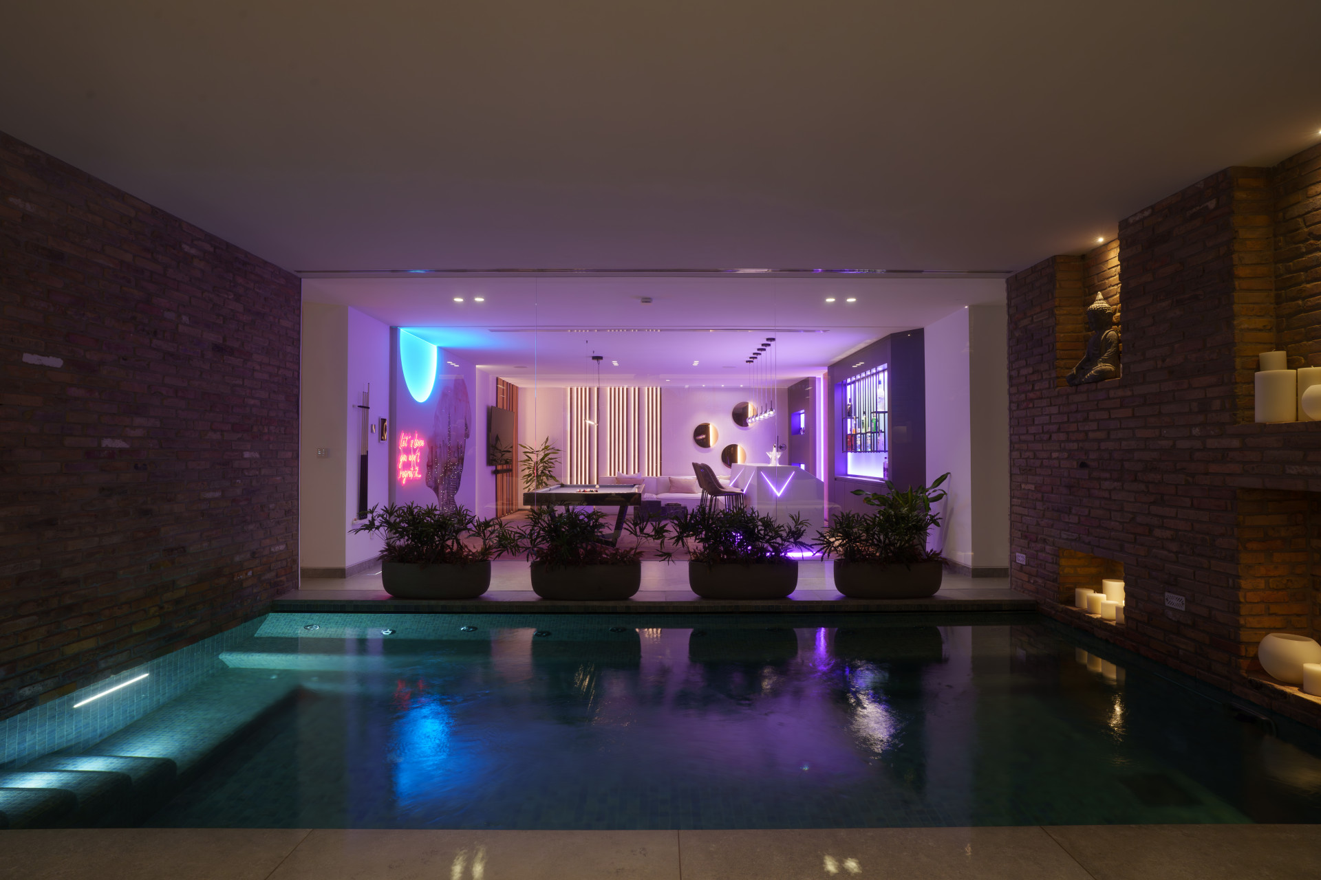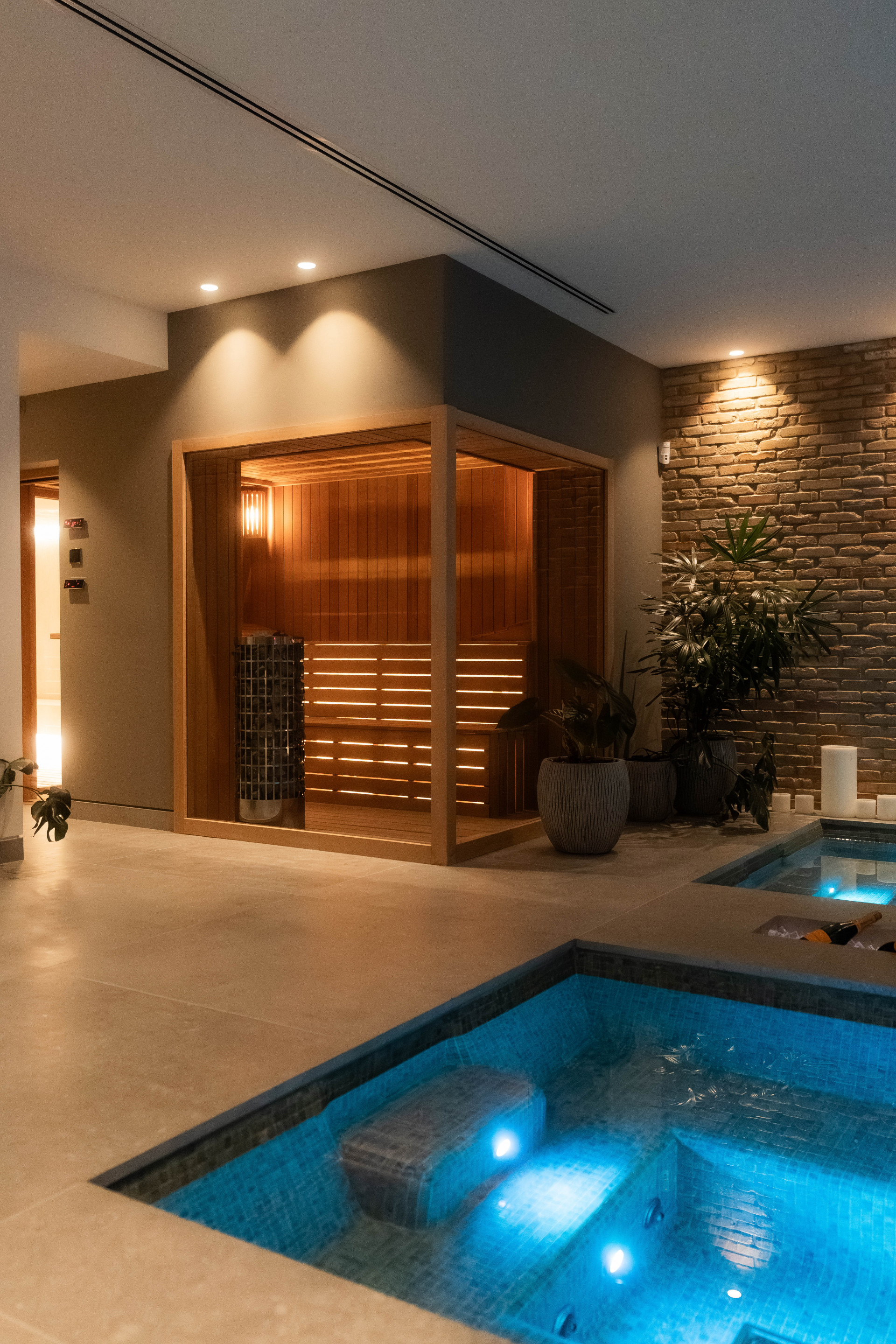 Kuchnia została zaprojektowana z myślą o najbardziej wymagających – wyposażona w najwyższej klasy sprzęt marki Gaggenau oraz elegancką zabudowę Danespan, łączy wyrafinowaną estetykę z codzienną funkcjonalnością. Przylegające biuro domowe zapewnia ciche i praktyczne miejsce do pracy lub nauki. Na zewnątrz wyróżnia się wyjątkowe kino przy basenie, które tworzy niepowtarzalną, luksusową atmosferę na niezapomniane wieczory pod gwiazdami.