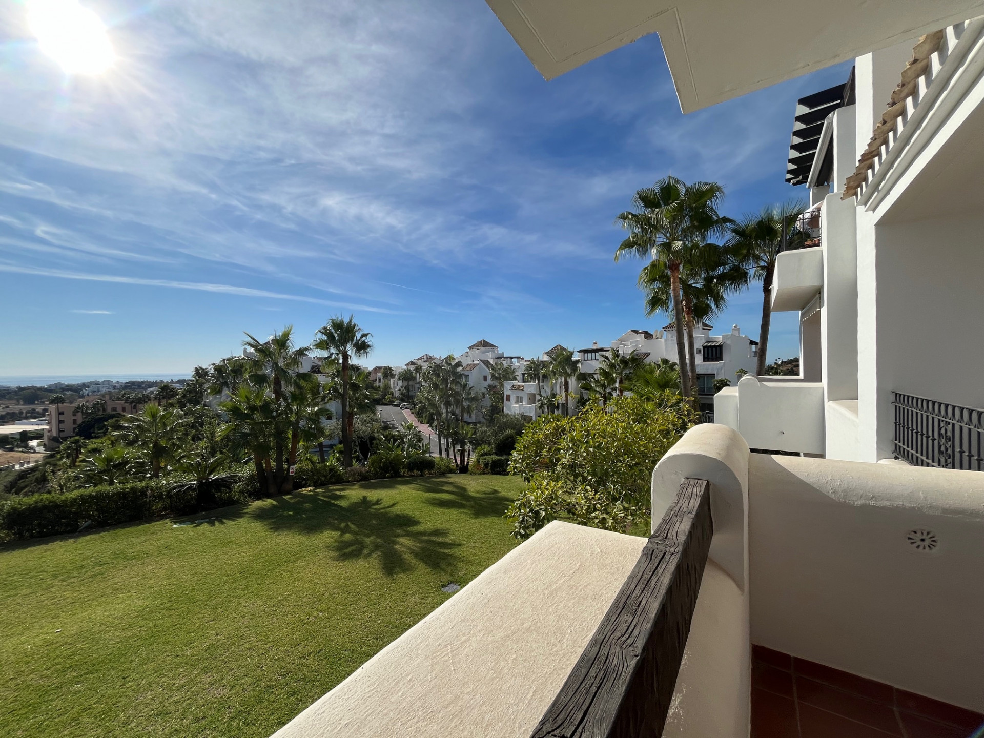 Welcome to this delightful apartment, situated in one of the highest blocks of a beautifully maintained, low-density complex. From its elevated vantage point, the property enjoys sweeping panoramic views over the Mediterranean Sea and lush tropical gardens.