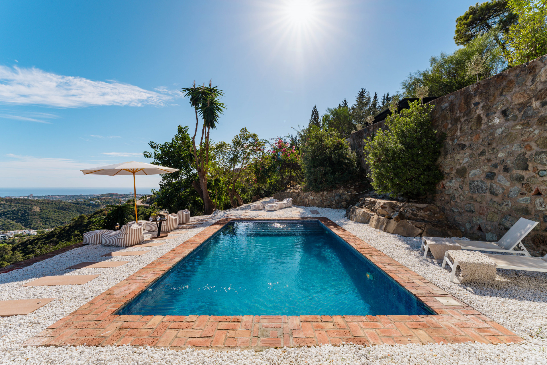 This exceptional six-bedroom villa is located in the prestigious gated community of El Madroñal 2 in Benahavís, offering the perfect blend of Andalucian charm and modern comfort. Set on an elevated plot of almost 4,800 m² with breathtaking views of the Mediterranean and surrounding mountains, the property provides total privacy and an exclusive lifestyle surrounded by nature.