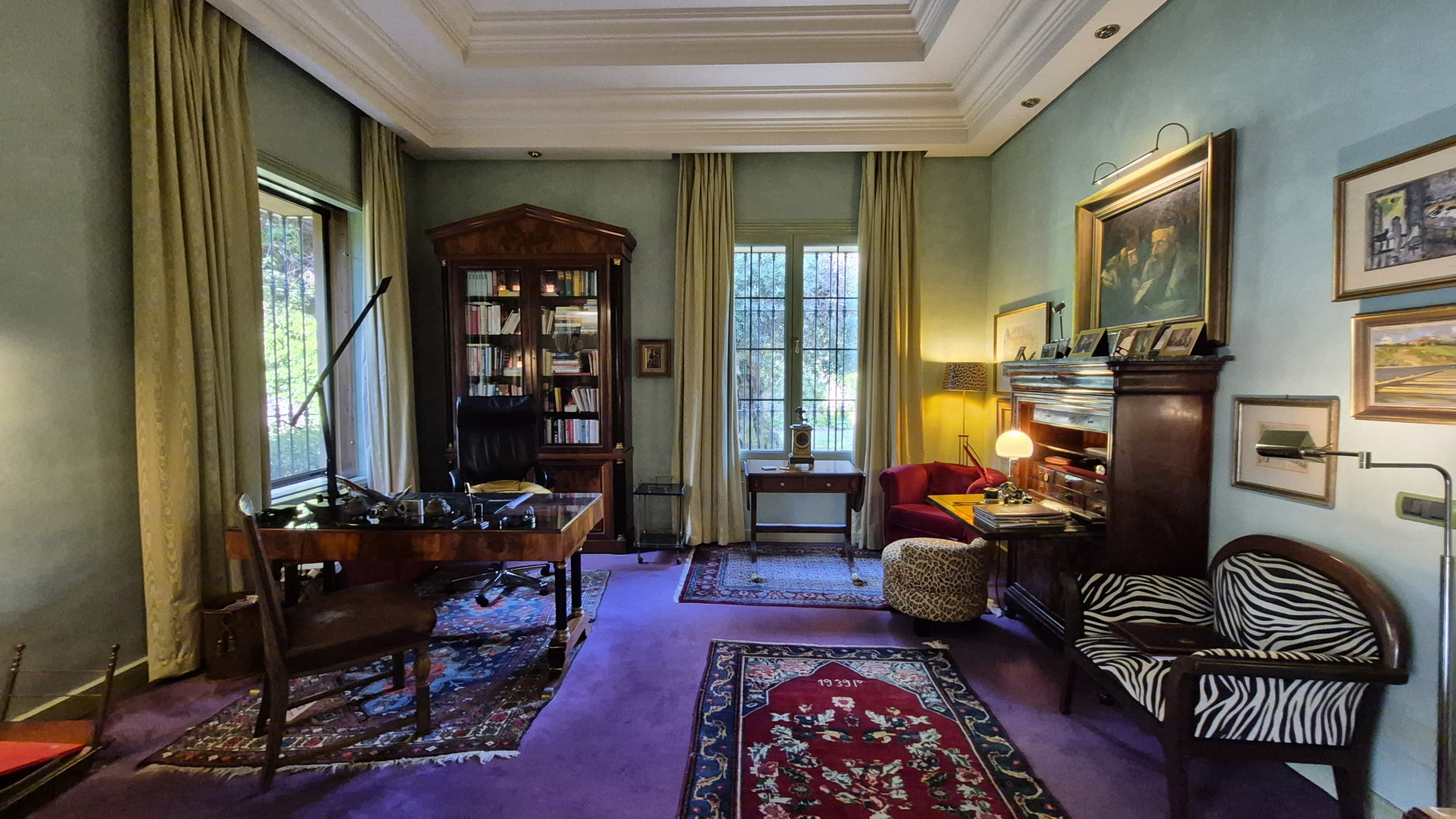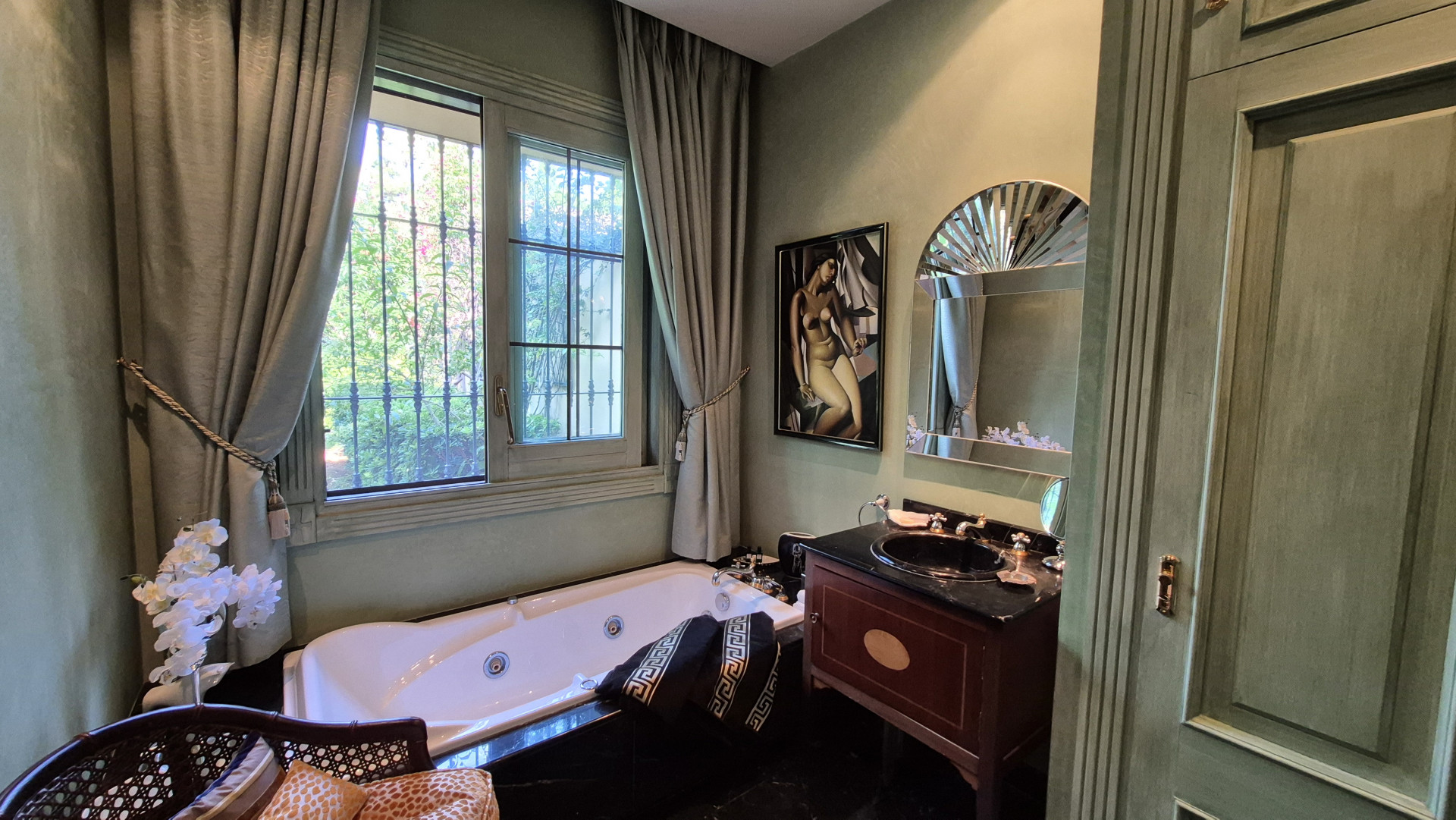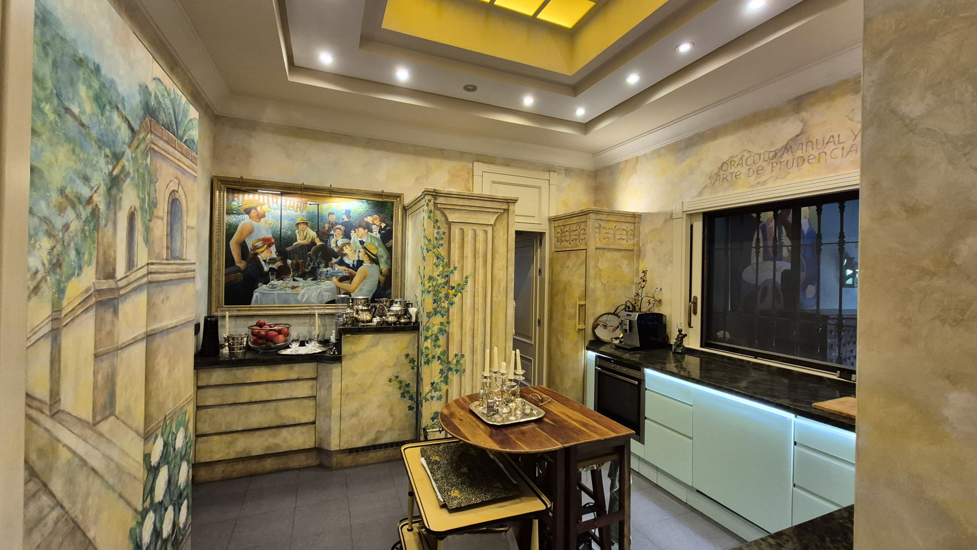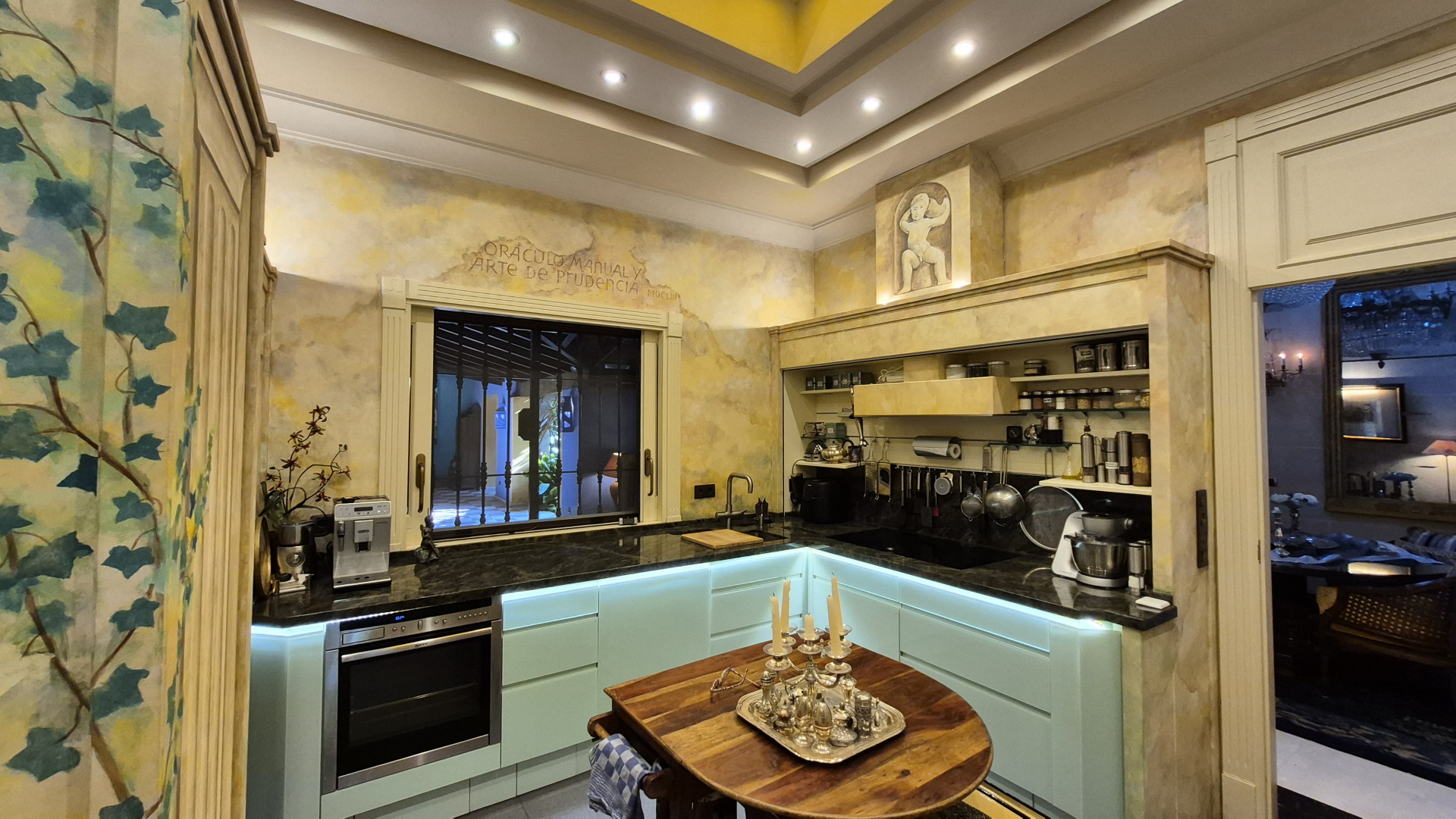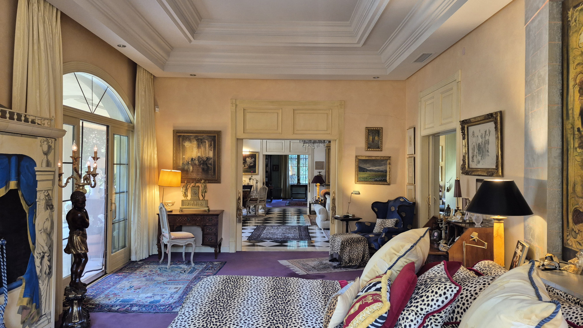 The interiors are defined by high ceilings and exquisite craftsmanship, including an impressive 8-metre-high ceiling in the dining room, enhancing the sense of grandeur and light. Marble floors, traditional architectural details, and carefully curated finishes reflect timeless quality and style.