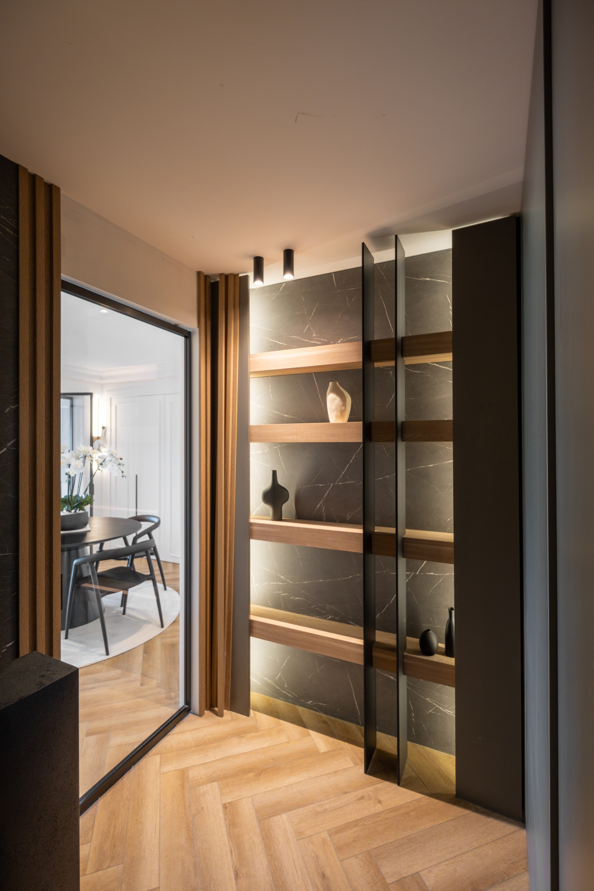 Throughout the home, herringbone wood flooring adds timeless sophistication, while full-height doors elevate the sense of space and volume in every room. The interior styling is both refined and inviting, showcasing premium design labels such as Modulnova and Kave Home.